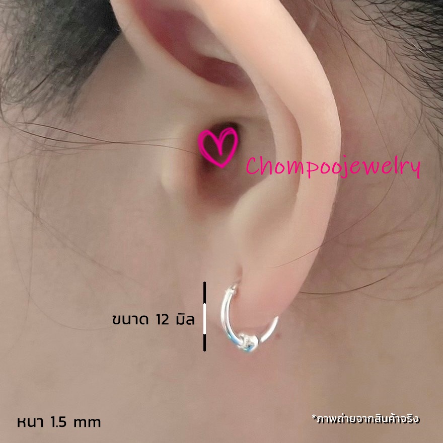 📣 ต่างหูเงินแท้ 92.5% แบบห่วงมีเม็ดประคำ1ลูก (hoop earrings & 1ball) เชื่อมติดกับตัวเรือนไม่สามารถหมุนได้