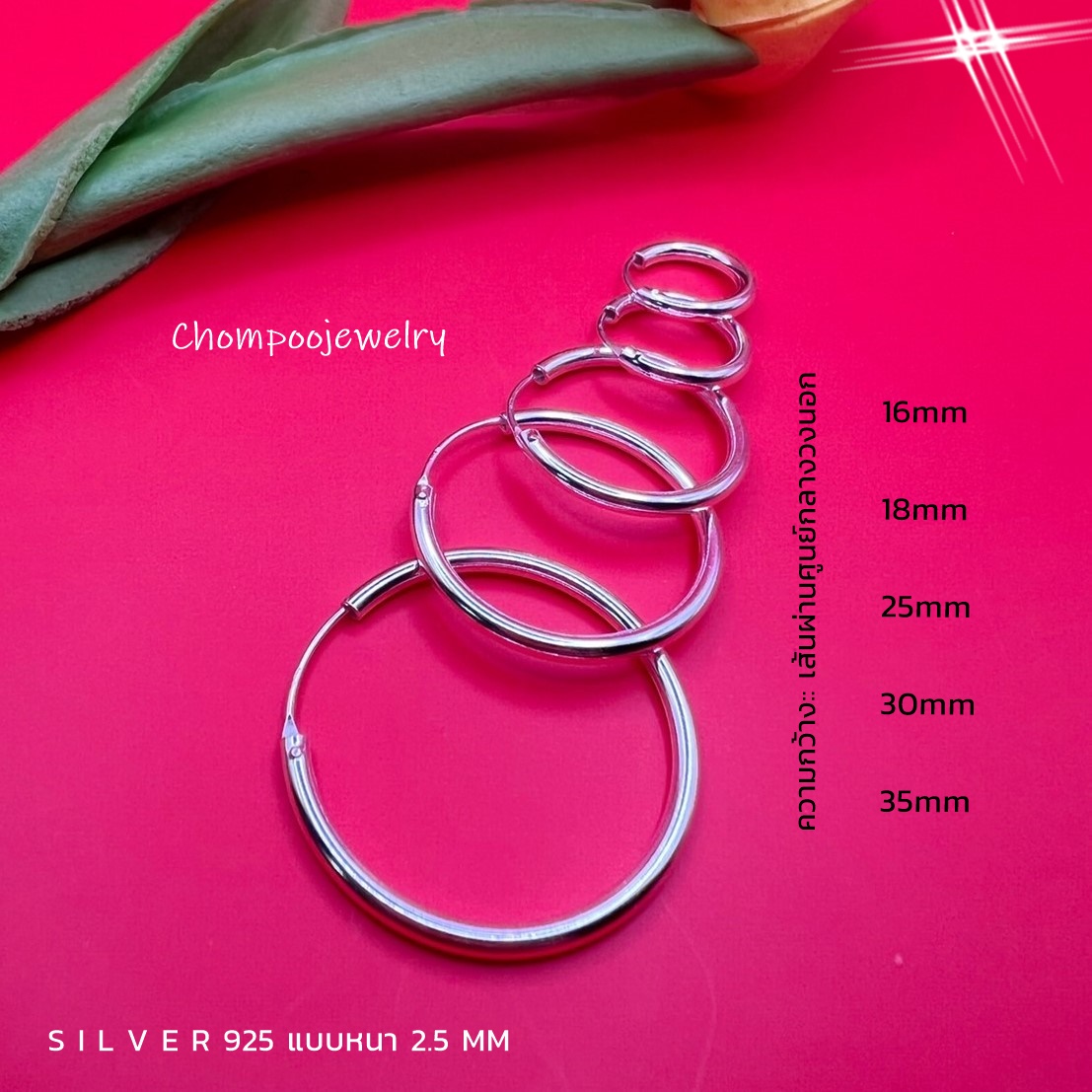 ต่างหูเงินแท้ 92.5% แบบห่วงเกลี้ยง ความหนา 2.5mm. (ราคาต่อคู่)
